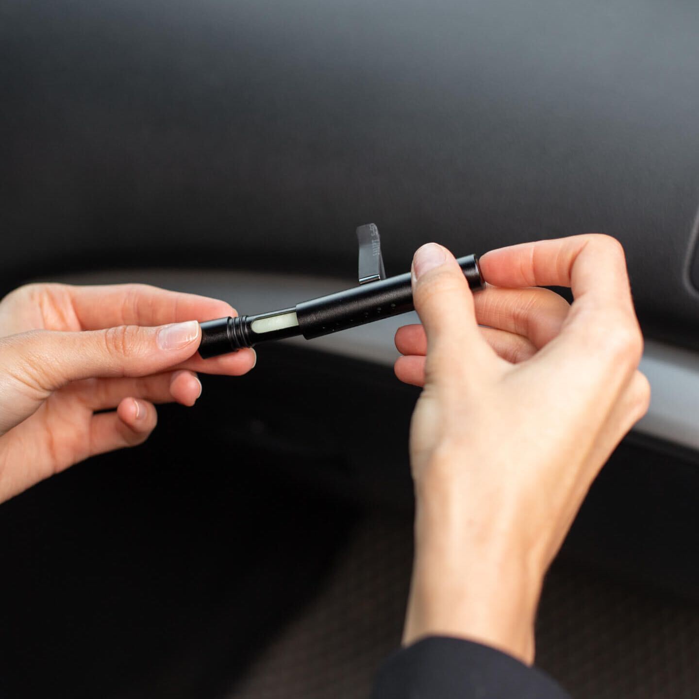 Лаконічний дизайн металевого дифузора Capsule Car Perfume розроблений таким чином, щоб не відволікати водія, а універсальне кріплення гарантує, що Capsule Car Perfume впевнено займе своє місце в салоні будь-якого авто.